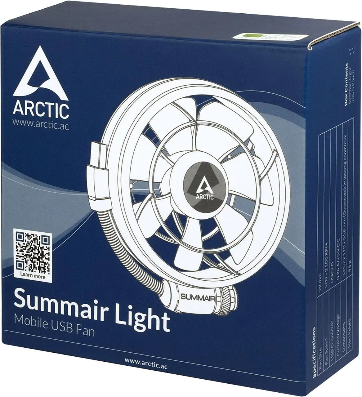 Thanks to its compact and particularly light design, the Summair Light can be taken anywhere without any problems and is well protected by the matching microfibre bag. The speed of the 92 mm fan is infinitely variable between 900-2100 RPM. The Summair Light is equipped with a protective grille and can easily be brought into the desired position thanks to its flexible gooseneck. It has a USB 2.0 standard connection and is therefore equally suitable for Notebooks, PCs and Powerbanks. The Summair Light is particularly energy-saving and practical.