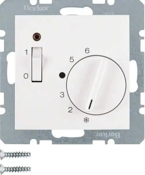 Berker room temperature controller 24 V 20318989 Manufacturer: Berker Designation: Room temperature controller 24 V with NC contact, central Type: 20318989 Design: On/Off Measuring range: 5..30 °C Thermal feedback: Series Differential value: 0.5 K Temperature readable: no Design Transducer/sensor: Bimetal Mounting type: Flush-mounted Contact design: NC contact (NC) Max. Voltage of contacts: 24 V Protection class (IP): IP20 Color: white RAL number: 9010 Height: 71 mm Width: 71 mm Depth: 46 mm Class of temperature controller: IBerker Room temperature controller 24 V 20318989: more detailsTemp.-controller 24V w. NC contact, Z-piece, rocker switch. , LED S.1/B.3/B.7 polar white, glossy. Room thermostat 24 V with break contact, central piece, rocker switch and LED, with imprint, regulation knob with temperature range limitation, with on/off switch and control LED for on, with control LED for on, with thermal feedback, with separate connection for night setback, e.g. for actuators normally closed, without spreading claws, with plug-in terminals, When the set temperature is reached, the contact opens. Flush-mounted installation, standard/area/design program. Material: plastic, thermoplastic, unbreakable, halogen-free. , EAN: 4011334309826.
