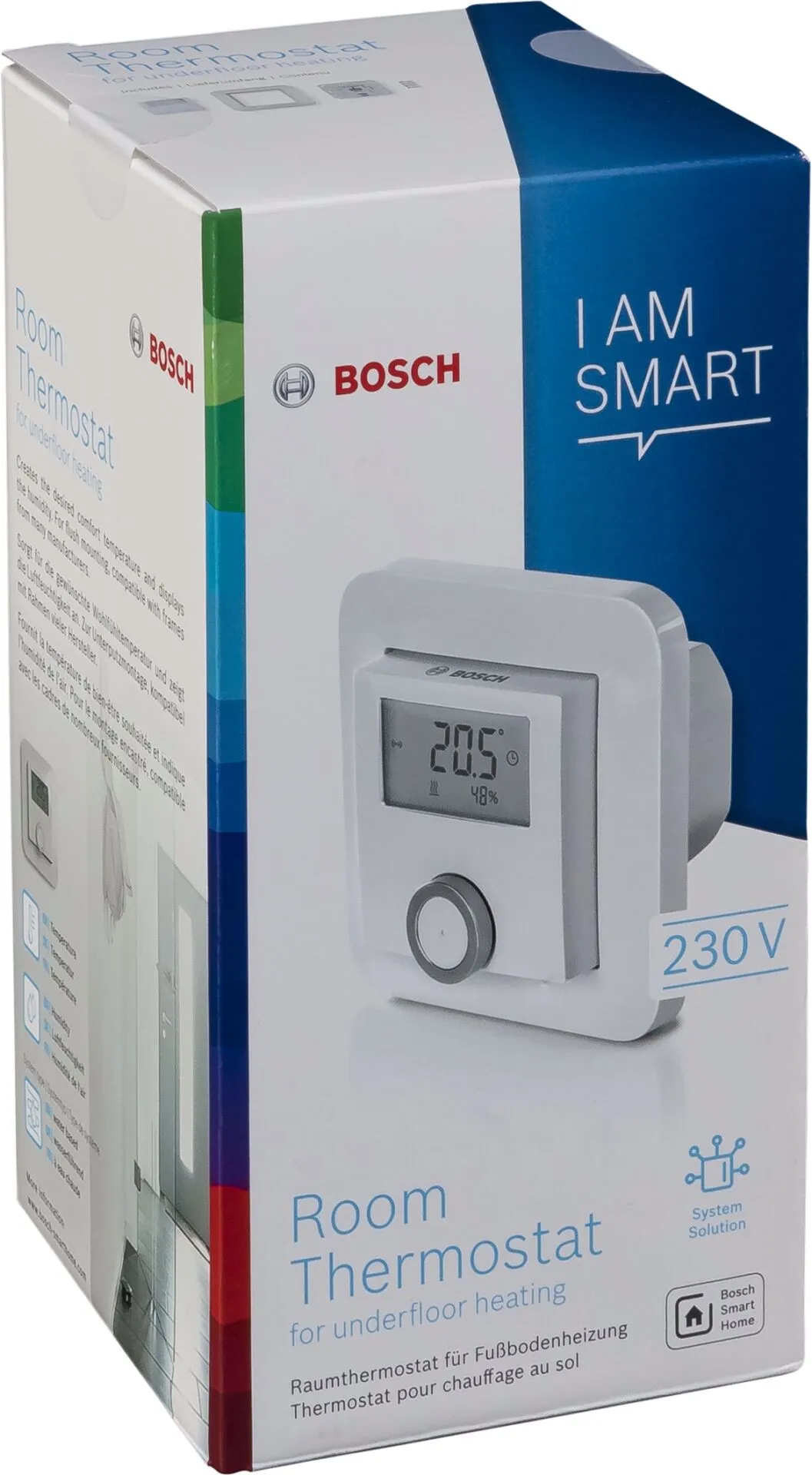 Short info: Bosch Smart Home – 230V version – Radiator Thermostat – wireless – 868 – 868.6 MHz, 869.4 – 869.65 MHz Group Integrated Systems & Automation Manufacturer Bosch Art. No. 8750001003 Model Smart Home EAN/UPC 4062321102173 Product Description: Bosch Smart Home – 230V version – Radiator Thermostat Product Type Radiator Thermostat Functions Control Heating Systems Power Source Power Adapter Connectivity Wireless Frequency Band 868 – 868.6 MHz, 869.4 – 869.65 MHz Dimensions (Width x Depth x Height) 5.5 cm x 5.4 cm x 5.5 cm Detailed Details General Product Type Radiator Thermostat Functions Control Heating Systems Power Source Power Adapter Connection Technology Wireless Max. Range (outdoor) 100 m Frequency band 868 – 868.6 MHz, 869.4 – 869.65 MHz Miscellaneous Rated voltage AC 230 V Marking IP20 Dimensions and weight Width 5.5 cm Depth 5.4 cm Height 5.5 cm Weight 102 g Environmental conditions Min. operating temperature 0 °C Max. operating temperature 50 °C. Operating temperature 50 °C.