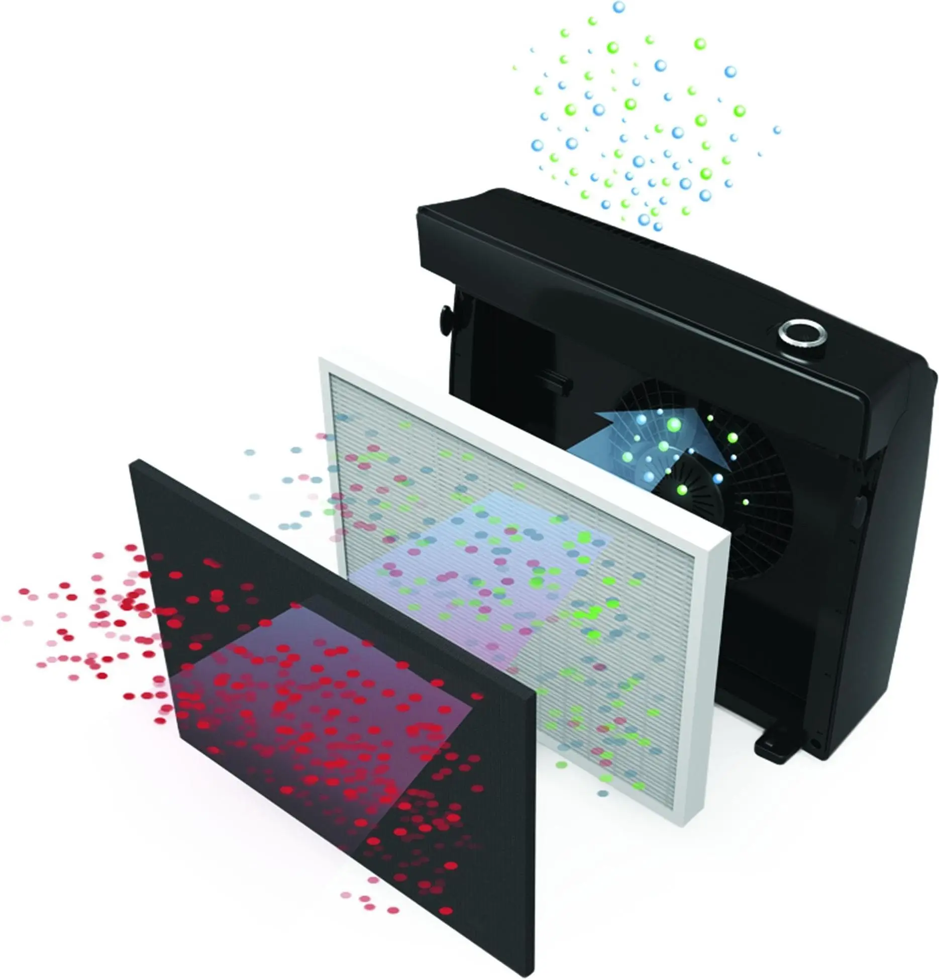 HEPA Filter filters 99% of all airborne pollutants as small as 0.3 microns, including animal dander, allergens, mold spores and dust particles