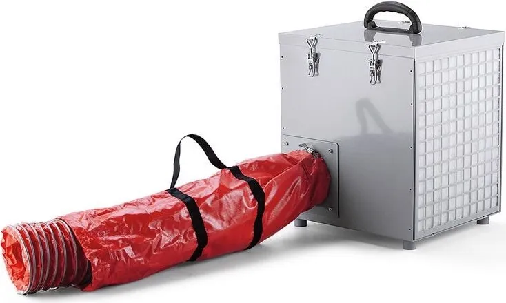 For air purification during renovation and deconstruction work in black areas. To protect the user, respirable fine dusts are filtered out of the air using coarse, fine, M/H filters as well as activated carbon filters.