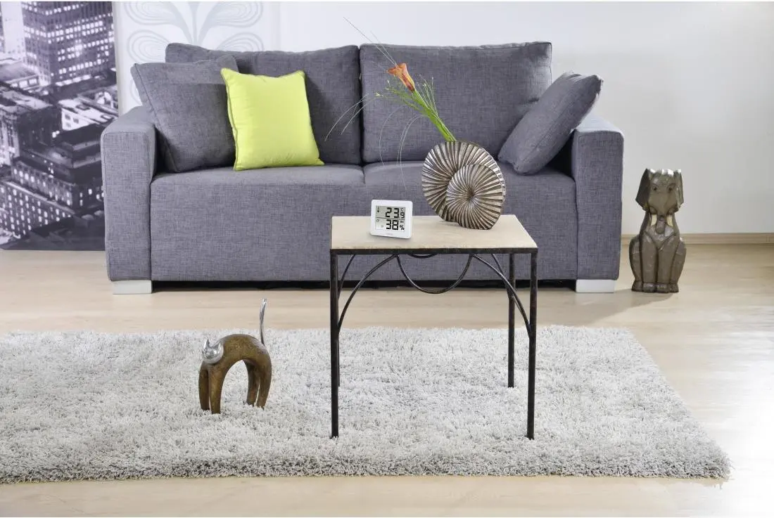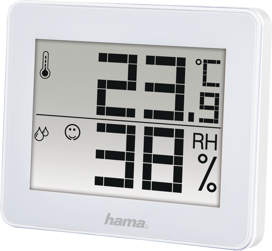 Comfort display shows the state of the indoor climate in three symbols: neutral face, smiling face and sad face. Flat housing in modern high gloss finish.