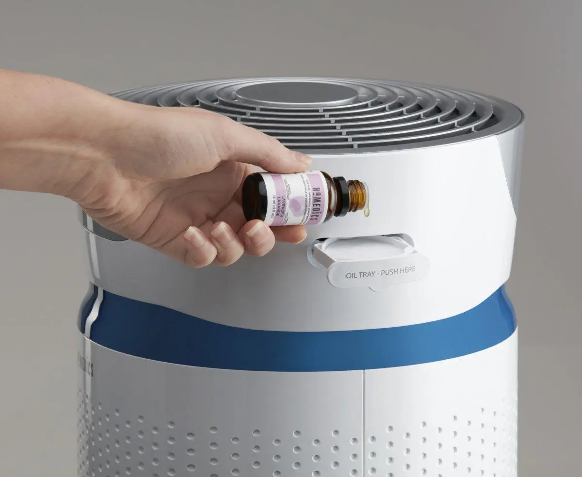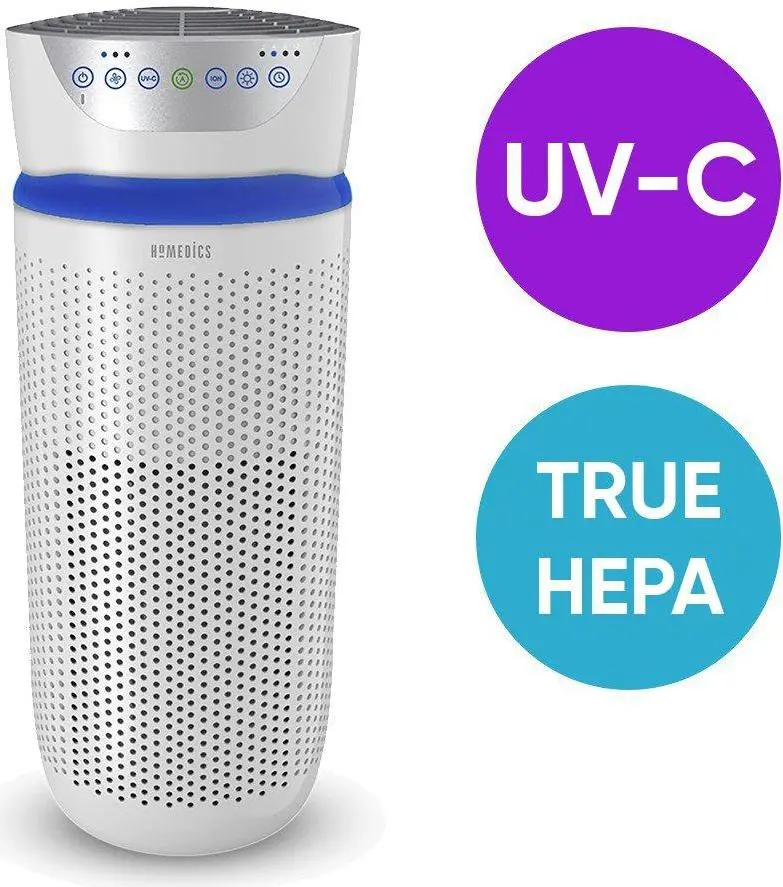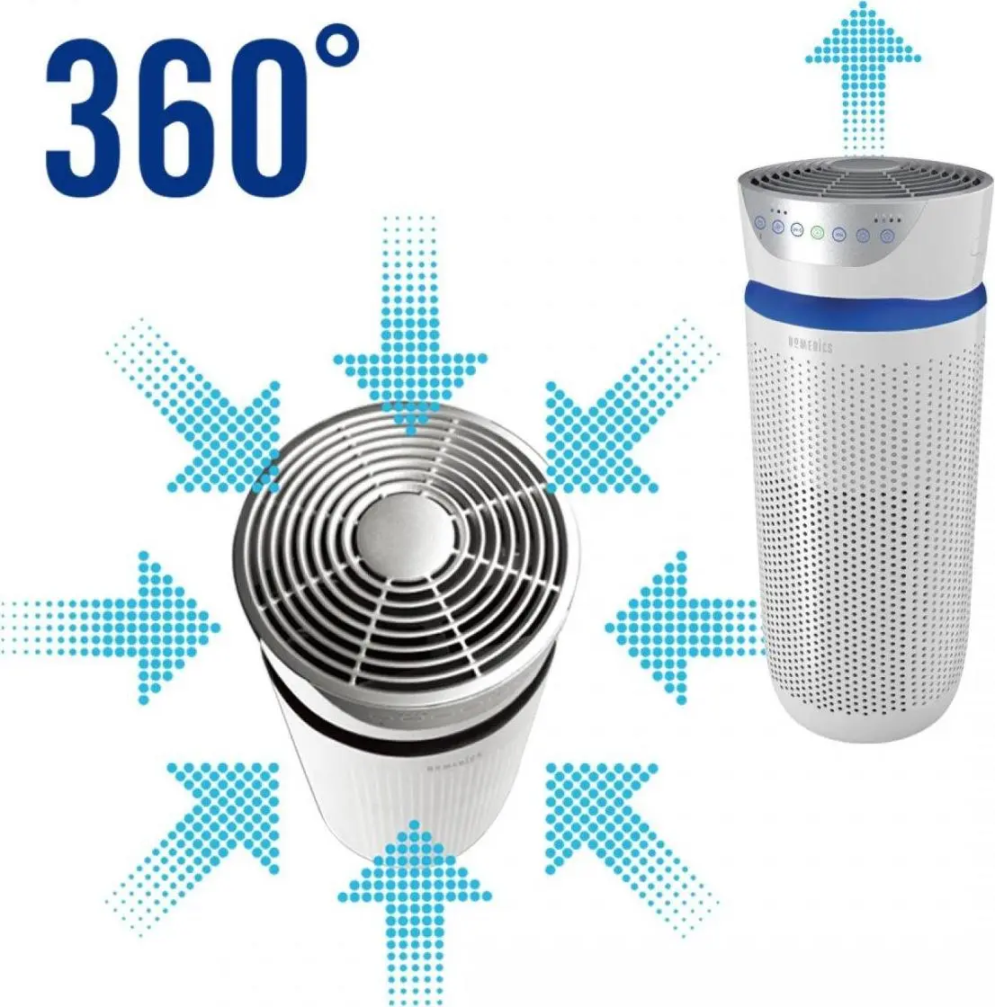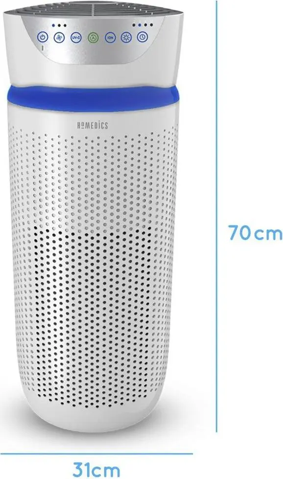 With a 360 ° rotating True HEPA filtration system, 99.97% (99% of standard HEPA filters) of airborne bacteria, pet dander, mold spores, dust, microbes, viruses are removed in the room, making the HoMedics 5in1 TotalClean air purifier ideal for people with asthma, allergies. Air filtration consists of 5 parts: pre-filter, True HEPA filter, carbon filter, UV-C technology and ionizer. HoMedics air cleaning filters are removable, cleanable and replaceable. To ensure optimal cleaning, we recommend replacing True HEPA filters every 12 months. In addition, the device has a separate tank for dripping your favorite essential oil – the air in the room will not only be cleaned, but will also smell pleasant to you. The AP-T40 is suitable for use in rooms up to 109 m2. a Technical information: 5-part air purification: pre-filter, True HEPA filter, carbon filter, UV-C lamp, ionizer; Essential oil capacity; Night lamp; Timer up to 12 hours; Filter replacement indicator; Has an ECARF (European Allergy Research Institute) quality label; 3 speeds and automatic mode; Operating sound: 41-57 dB (A); Power supply 250 V (2.5 A); Power: 75 W; Air flow: 264.8 m3 / h; Dimensions of the device: 257 x 257 x 643 mm. Power cord length: 1.8 m; Weight: 5.5 kg. Download the product manual.