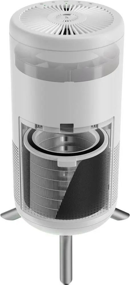 An elegant round air purifier with air quality sensor and aroma compartment. Great design, excellent performance and convincing features!.