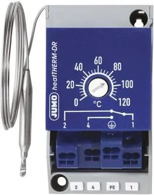 DIN EN 14597. heatTHERM-DR – temperature monitor. Thermostat for top hat rail mounting Capillary length 2000mm Stable switching point position due to ambient temperature compensation Push-in connection technology, thus 50% reduced installation time Protection class IP20.