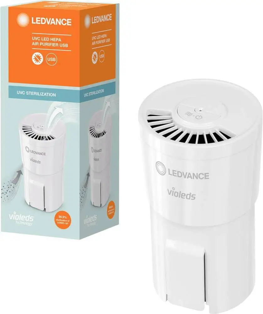 Product features: Eliminates up to 99.9% of viruses and bacteria, including SARS-CoV-2 (COVID19). Ensures clean ambient air through a three-stage disinfection using VIOLEDS UVC LEDs and a HEPA filter (H13). Purifies the air from pollen and fine dust. Improves air quality by removing unpleasant odors and cigarette smoke. Selectable between three air purification levels (low, medium, high). USB connection. Product benefits: Reliable, chemical-free sterilization through LED UV-C technology. Constant air sterilization. Does not contain mercury. Fields of application: Indoor applications. Small rooms. Cars.