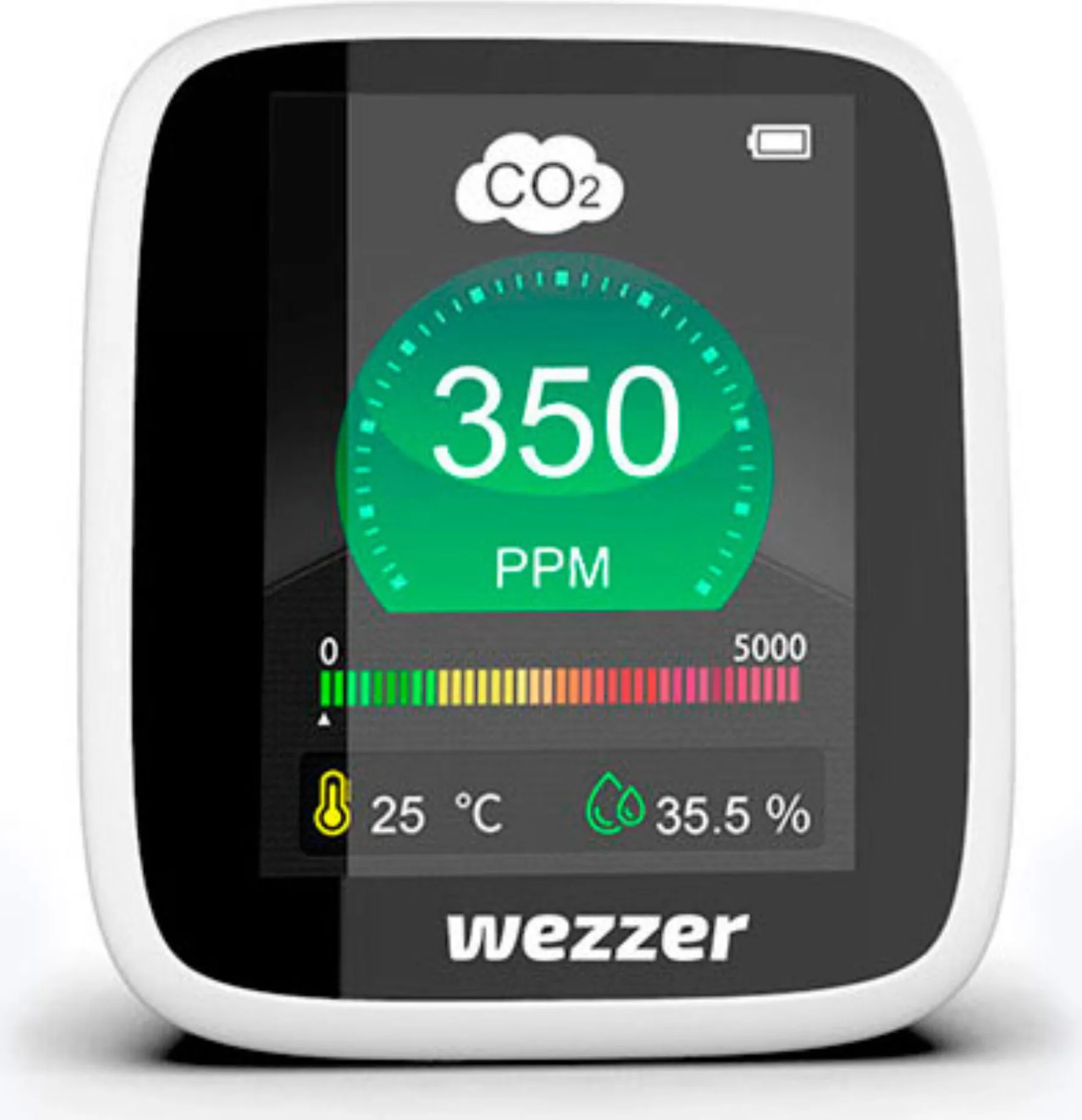 Levenhuk Wezzer Air MC20 Air Quality Meter The Levenhuk Wezzer Air MC20 tabletop model is an air quality meter that measures carbon dioxide content, temperature and humidity. A coloured scale on the LCD display shows the concentration of carbon dioxide. If the limits are exceeded, it reminds you to ventilate the room. The bright display, the large numbers and the elegant design make it easy and convenient to use.The CO concentration detection is a very useful function: there is already too little oxygen in the room, but the air does not yet feel stuffy. Therefore, people in the room do not notice that it is time to open a window. Why are exceeded carbon dioxide limits dangerous? Staying in such a room for a long time leads to tiredness, headaches and general discomfort. This is a real problem for rooms where many people stay for long periods of time, such as a child’s room. Make sure that you and your loved ones breathe clean air by keeping your ventilation schedule up to date with modern technology!The housing of the Levenhuk Wezzer Air MC20 meter is made of durable ABS plastic. This makes the instrument very durable. You can easily take it with you on holiday and business trips. The meter is powered by a built-in rechargeable battery and the indicator on the display lets you know when it is time to charge it. The device does not require a permanent power connection, which means it can be operated indoors without any annoying cables.Please note: A mains adapter (not included) is required to charge the device. The voltage of the USB port of the PC is not sufficient for this purpose. You can also use a smartphone charger.Main features: -CO measurement – Improves air quality and your quality of life -Measures temperature and humidity in the room -Alarm function in case of high carbon dioxide levels -Large digits, easy-to-read measuring scale, colour display -Rugged ABS plastic housing, display with backlight and integrated rechargeable batteryTechnical data: -Type of use: indoor -Type: air quality measuring device -Integrated functions: CO meter, hygrometer, thermometer -Design: wireless, tabletop, digital -Application: home use -Display type: colour -No. of displays: 1 -Power source: Built-in Li-Ion battery 1600 mAh, recharge at a wall socket with mains adapter (not included) via micro USB cable (included), 5 V, 1000 mA -Case material: High-strength ABS plastic -Lighting: yes Hygrometer (humidity) -Measuring units: % (RH) -Measuring range: 20-85% -Measuring resolution: 0.1 Thermometer (temperature) -Measuring units: °F, °C -Indoor measuring range: -10°C to +50°C -Measurement resolution: 1°C Air analyser: -CO meter: yes -Measurement range: CO: 400-5000md (ppm) -Measurement resolution: yes -Special functions: CO limit alarms.