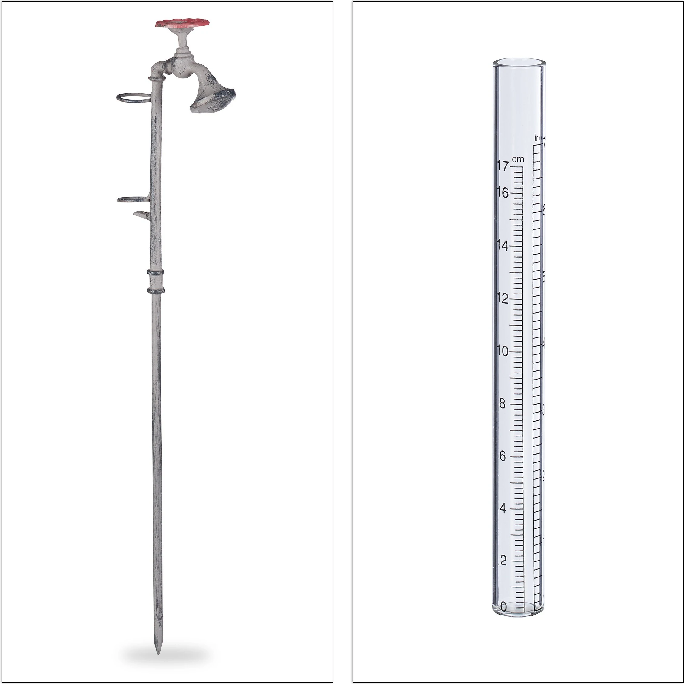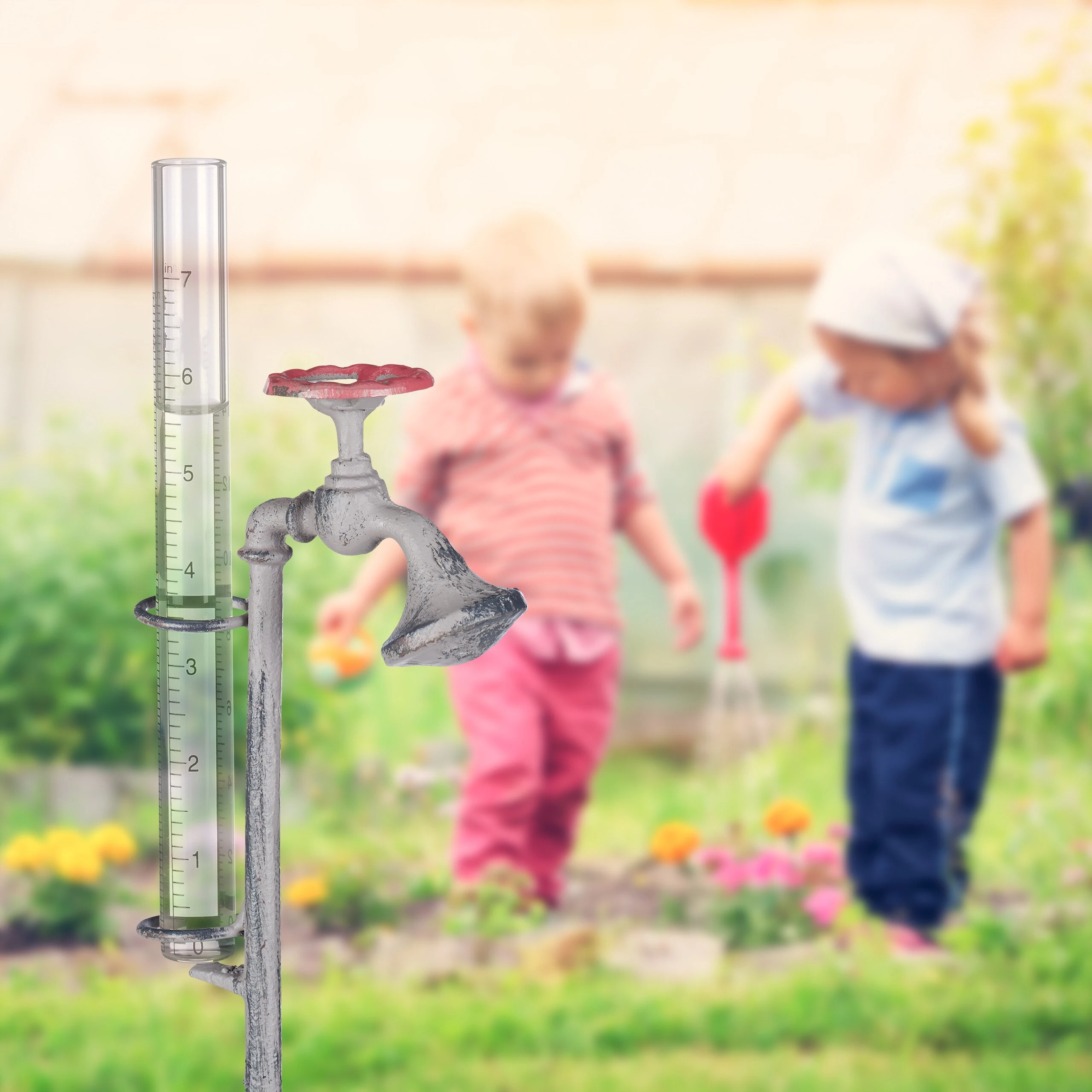 The measurer helps in informing you of small precipitation amounts. The stake is very noticeable as a vintage country garden water tap. The weather-resistant mix of glass and cast iron, makes the rainfall measurer suitable for permanent outdoor use. The screw-in stake makes it possible to easily insert it into the ground and use straight away.