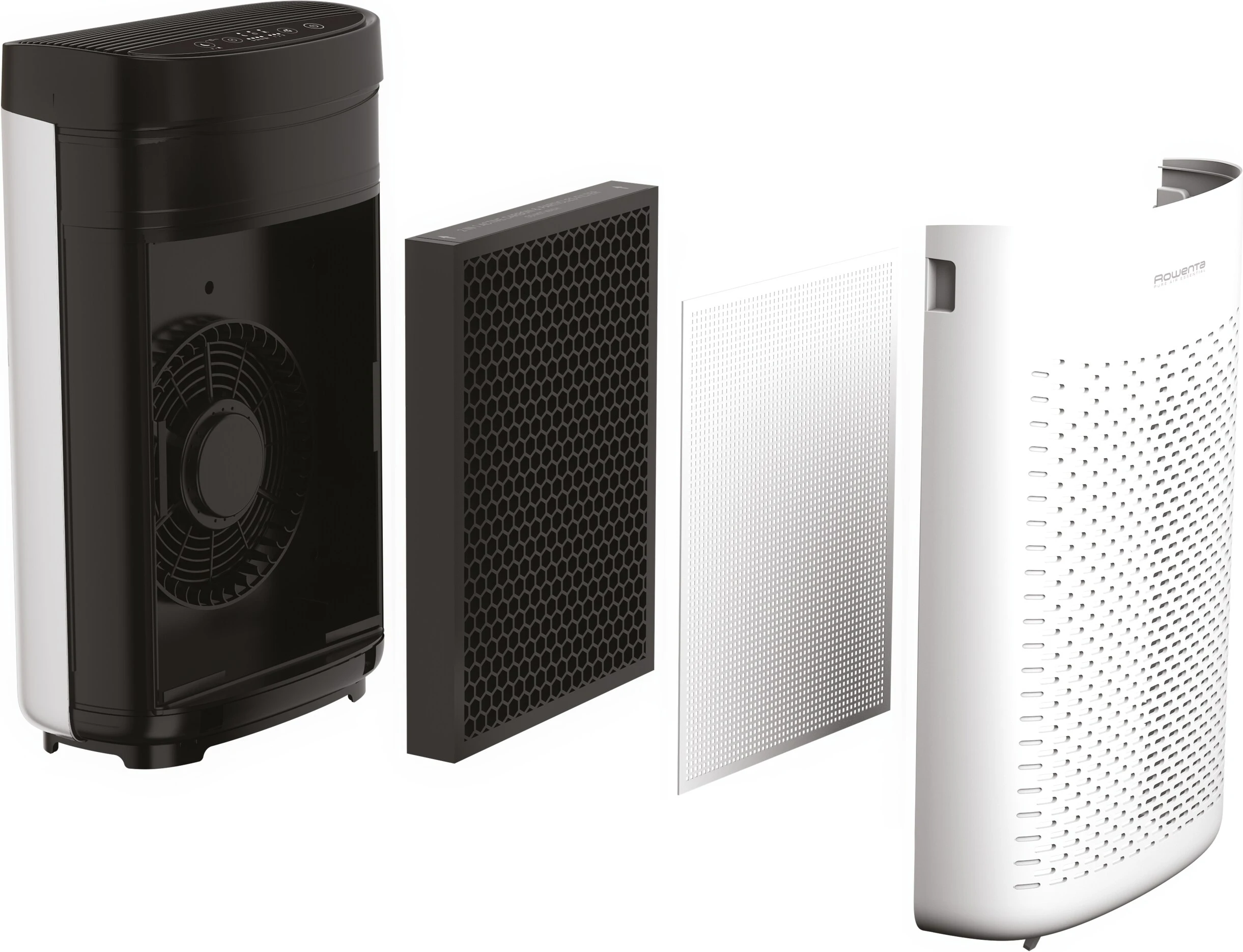 Breathe freely and protect your home with the Pure Air Essential Air air purifier from Rowenta. This air purifier offers fast, efficient air purification with high effectiveness and a user-friendly design. Its three filtration stages remove up to 99.9% of fine dust particles from the air and act as a protective shield against indoor air pollution.