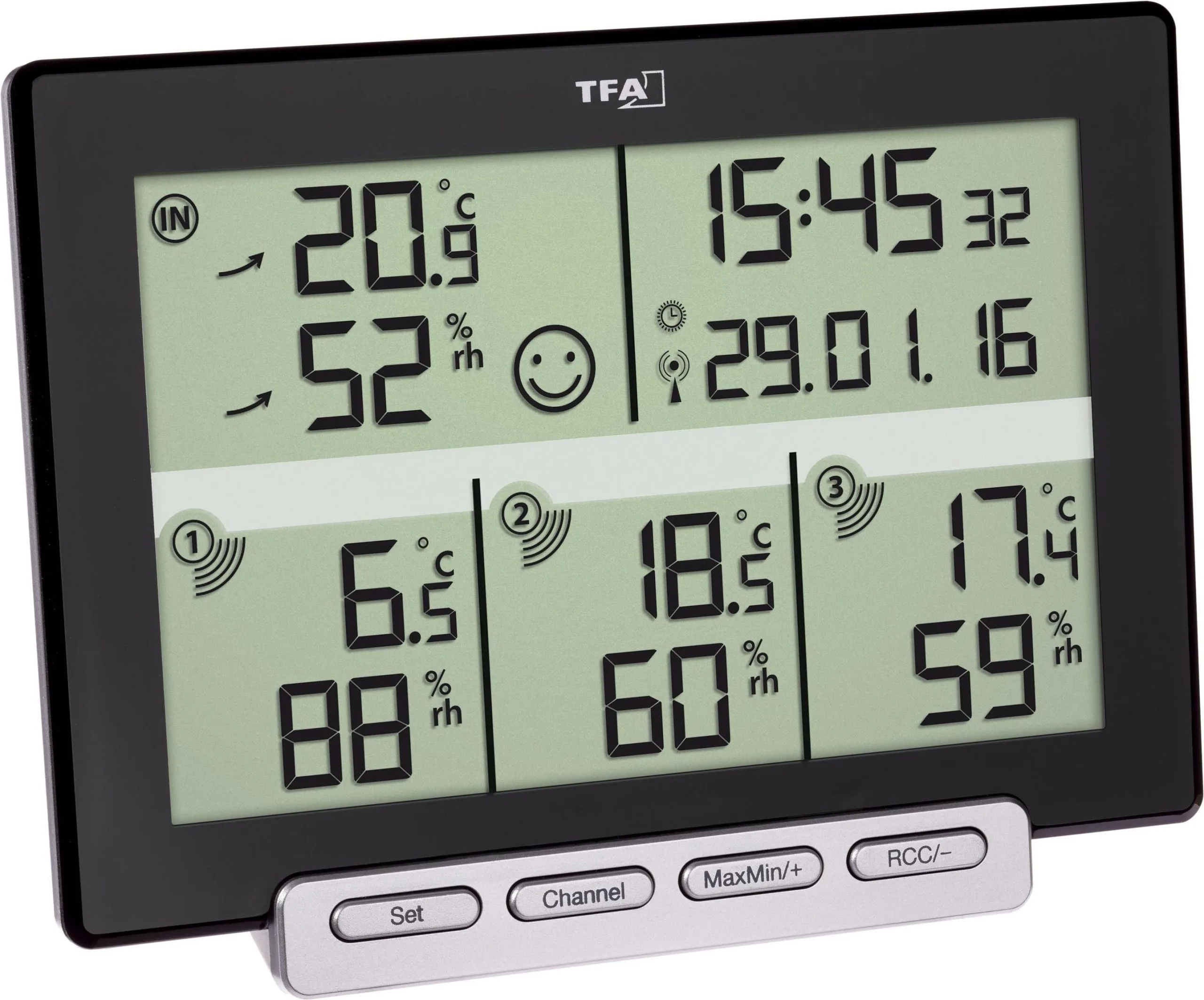 People spend at least two thirds of their lives indoors. So you can see the climate at the place of installation and additionally in three other rooms (bedroom, children’s room, cellar, winter garden…) or outside. The control of indoor temperature and humidity through targeted heating and ventilation creates a comfortable and healthy living climate and even saves heating costs.
