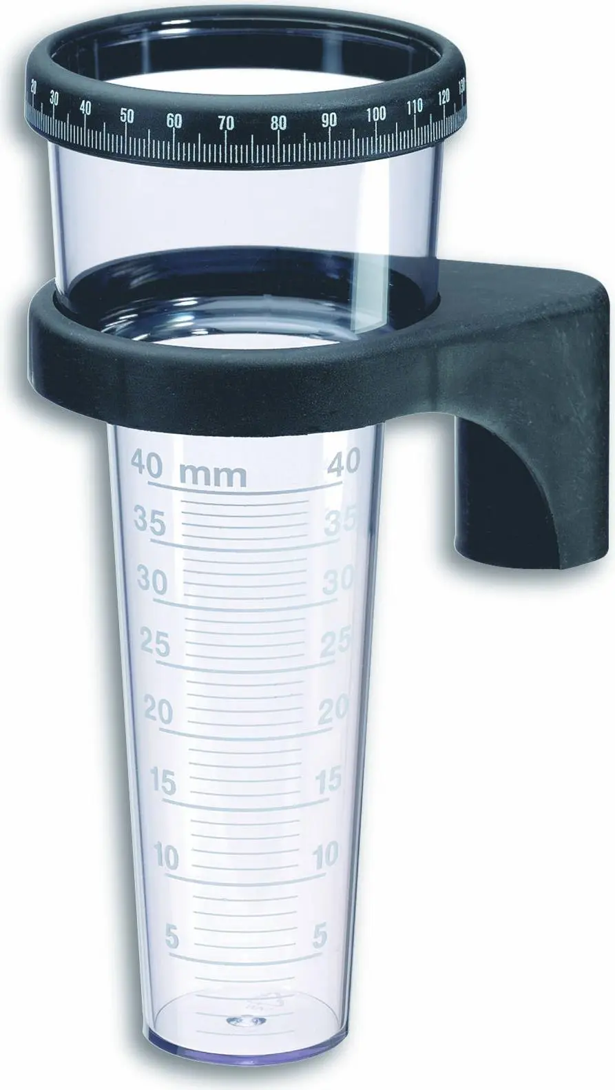 A practical rain gauge for the easy and exact determination of the precipitation quantities made of high-quality and stable plastic, without rod. To ensure that the result is as accurate as possible, the rain gauge should be mounted on a suitable rod at a height of about one metre and should stand freely and upright. The measuring cylinder can be easily removed from the holder for emptying. With the patented memory adjustment ring, you can record your measured values and add them up over a longer period of time. The product is completely manufactured in Germany.
