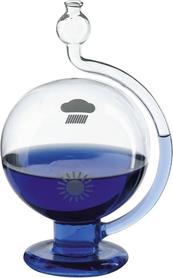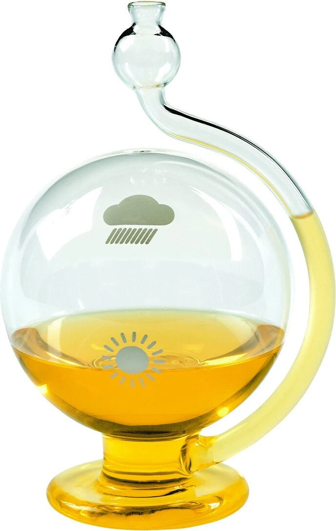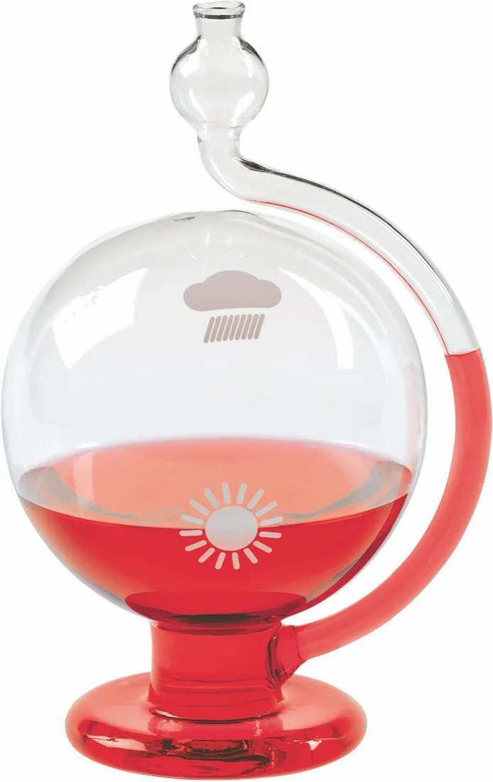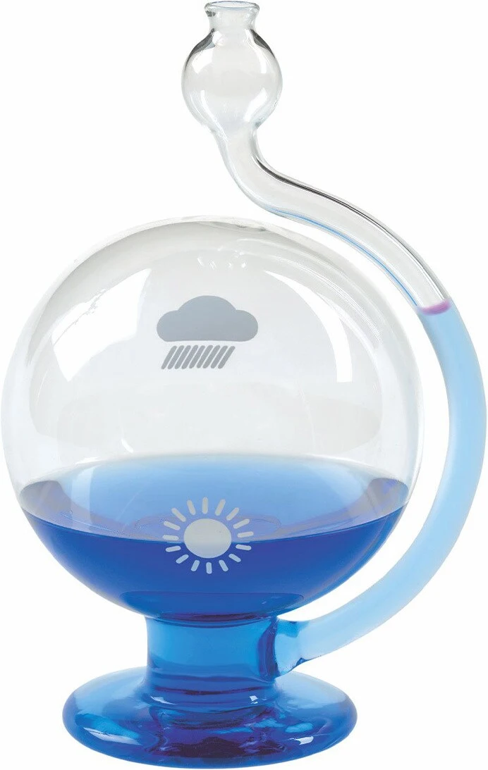 The TFA weather ball made of glass indicates changes in air pressure quickly and precisely. When the air pressure rises (better weather) the water column in the lateral display tube falls, when the air pressure falls (worse weather) it rises. The barometer is simply filled with distilled water. Colour tablets (food colouring) in various colours are included in the scope of delivery.