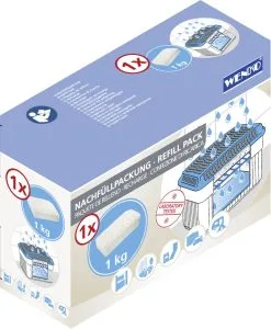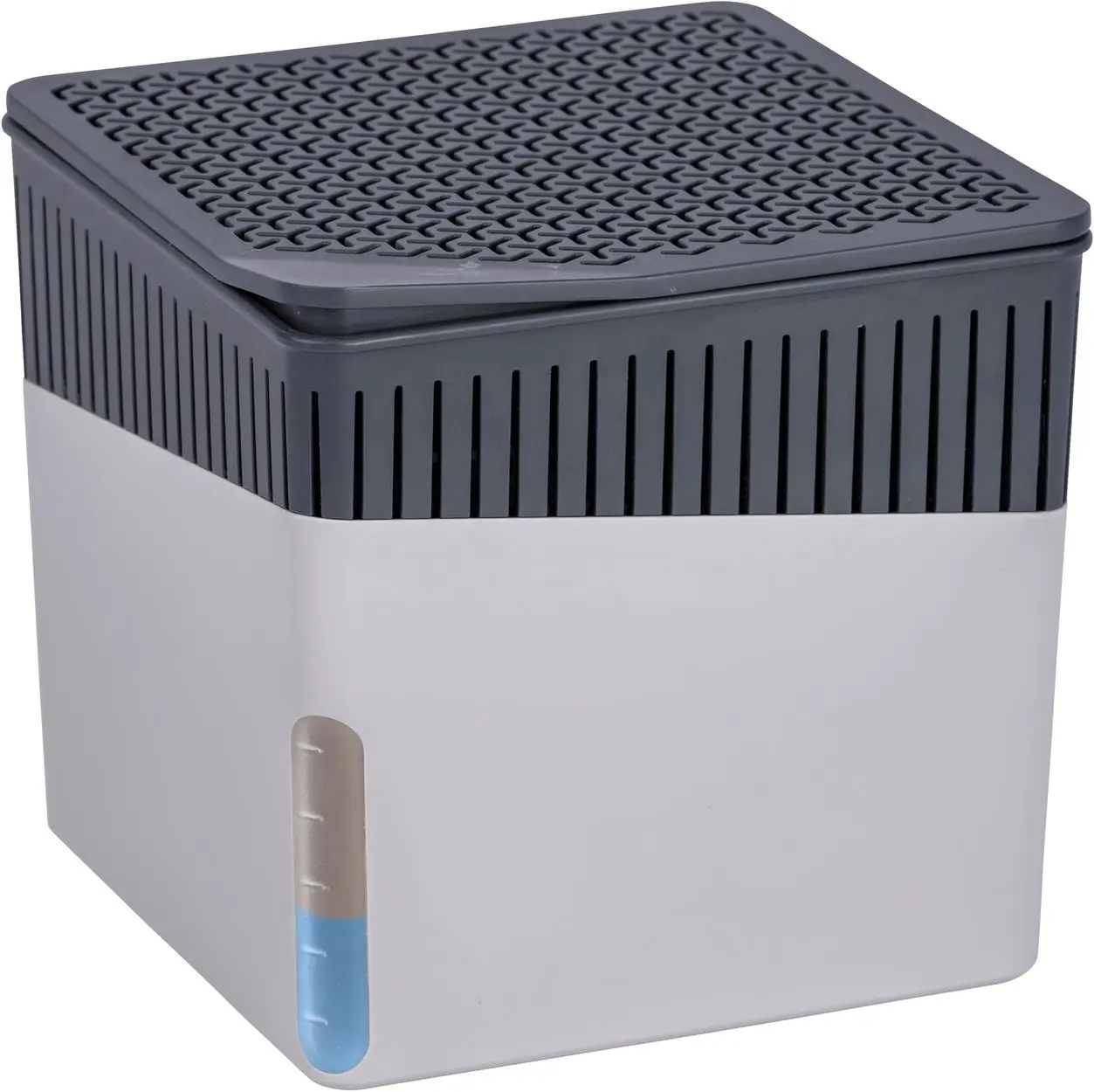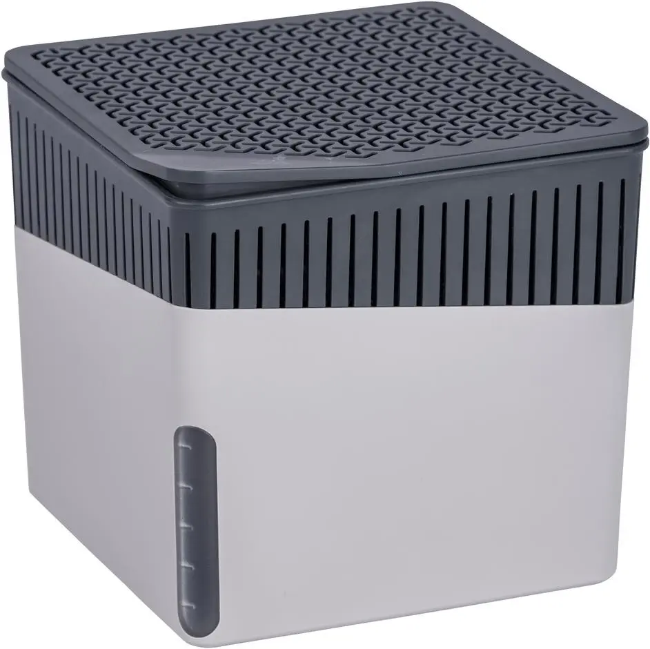 The Cube design dehumidifier from Wenko in trendy grey ensures less humidity and a comfortable climate. The modern dehumidifier can be elegantly integrated into any room and creates a visual highlight in a trendy cube shape. In the car, motorhome or camper, fogged or even internally frozen vehicle windows are a thing of the past. Like a magnet, the dehumidifier draws moisture out of the vehicle interior, and the days of cold and damp cellars and living rooms are over. The moisture killer intensively protects walls, furniture and textiles against moisture, mould and unpleasant odours. It also prevents rust and mould stains and provides a pleasant climate in the cellar, bathroom, bedroom and all other rooms as well as in wardrobes.