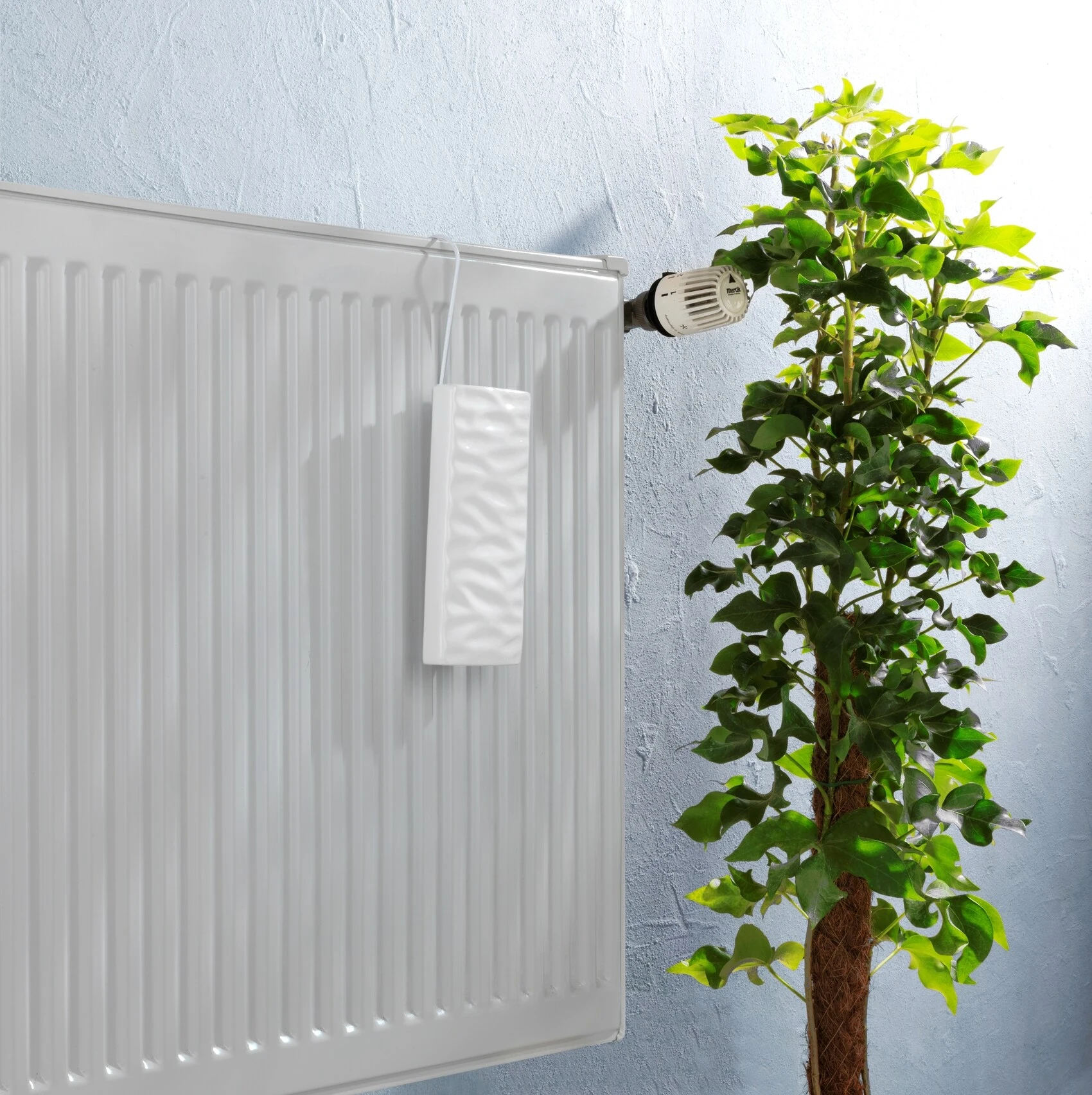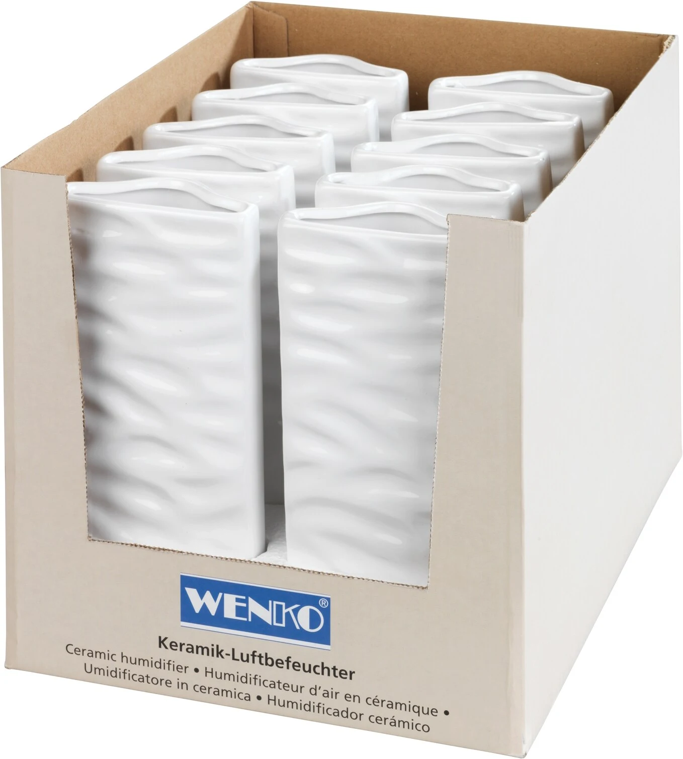 The charming humidifier made of high-quality ceramic is decorated with an elaborate wave structure and is the perfect accessory for all those who like to set unusual accents! In addition, the humidifier provides sufficient air humidity, especially during the heating period, thus ensuring a pleasant and healthy room climate. It thus contributes to an increased sense of well-being. The evaporator is simply hung over the radiator and filled with water. It is suitable for all common ribbed radiators. The strong metal suspension for ribbed radiators is included.