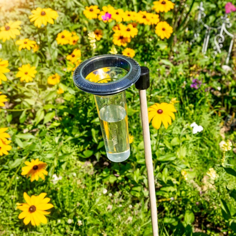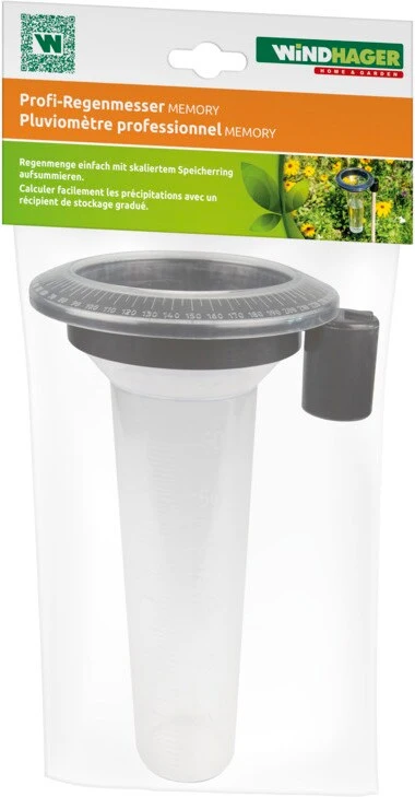 Determining the amount of precipitation made easy. The scale shows the amount of precipitation that has fallen. The amount of rain can also be documented over a longer period of time by turning the storage ring by the corresponding amount (= adding up). Example: Yesterday 10 mm and today 20 mm fell. Then turn the ring to 30 mm.By means of the holder, the rain gauge can be easily attached to e.g. a Windhager rose ball rod (art. no. 07962).