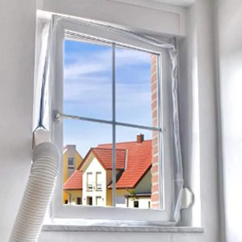 The window seal is easily attached with Velcro tape. The seal fits all standard windows whose circumference of 4 meters is not exceeded. Despite the seal you can open and close your window without any problems, because you can put the hose all the way through by opening the zipper.