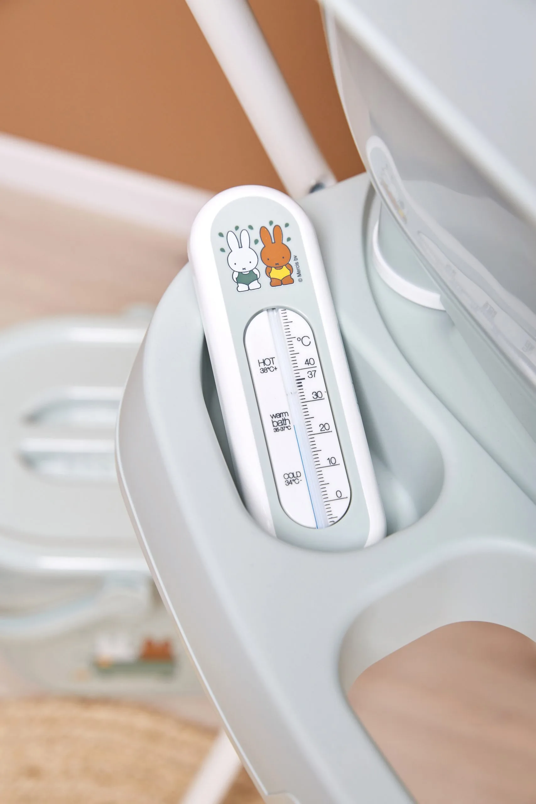 The bébé-jou bath thermometer measures very accurately and comes with a safe liquid. It is advised to maintain a water temperature of 37 degrees (99 °F). This is clear from the bath thermometer is read.